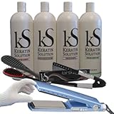 KS Keratin Solution Brazilian Keratin Treatment Kit (Keratin, Clarifying, Shampoo & Conditioner) 32oz Plus FREE Babyliss Flat Iron This new revolutionary smoothing Keratin system infuses Keratin deep into the hair cuticle eliminating up to ninety-five percent of frizz and curl from the hair. The best part of it is that you can wash it out the same day! It includes: *Brazilian keratin treatment 32oz *Clarifying shampoo 32oz *Keratin shampoo 32oz *Keratin conditioner 32oz *Thermal Glove *Straightening brush *Tension Comb *Babyliss Flat Iron 1 3/4"